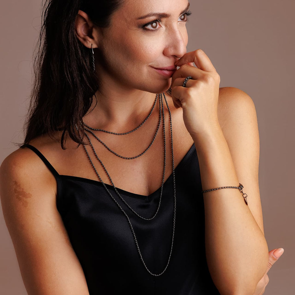 DelBrenna's Iconic Links chain is at the heart of our stunning, hand-crafted Italian jewelry. Now in its thinnest version ever, this 2MM black rhodium necklace is even more intricate, elegant, and absolutely splendid on its own or with any of DelBrenna’s pendants.