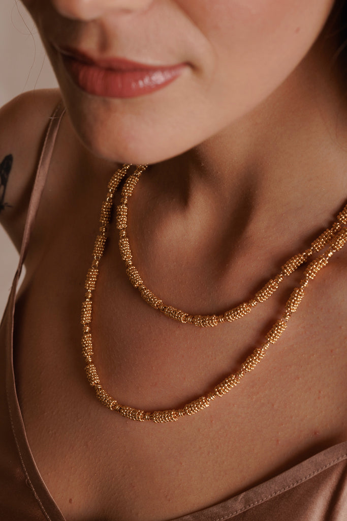 While the classic Figaro chain is flat and consists of short and elongated links, our Figaro chains are anything but flat!