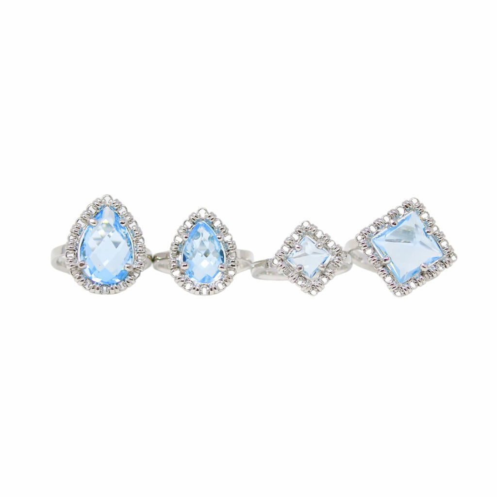 • Gemstone: Blue Topaz (10x14mm), pear cut.