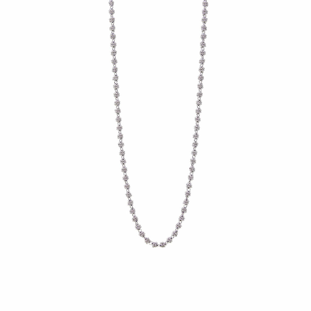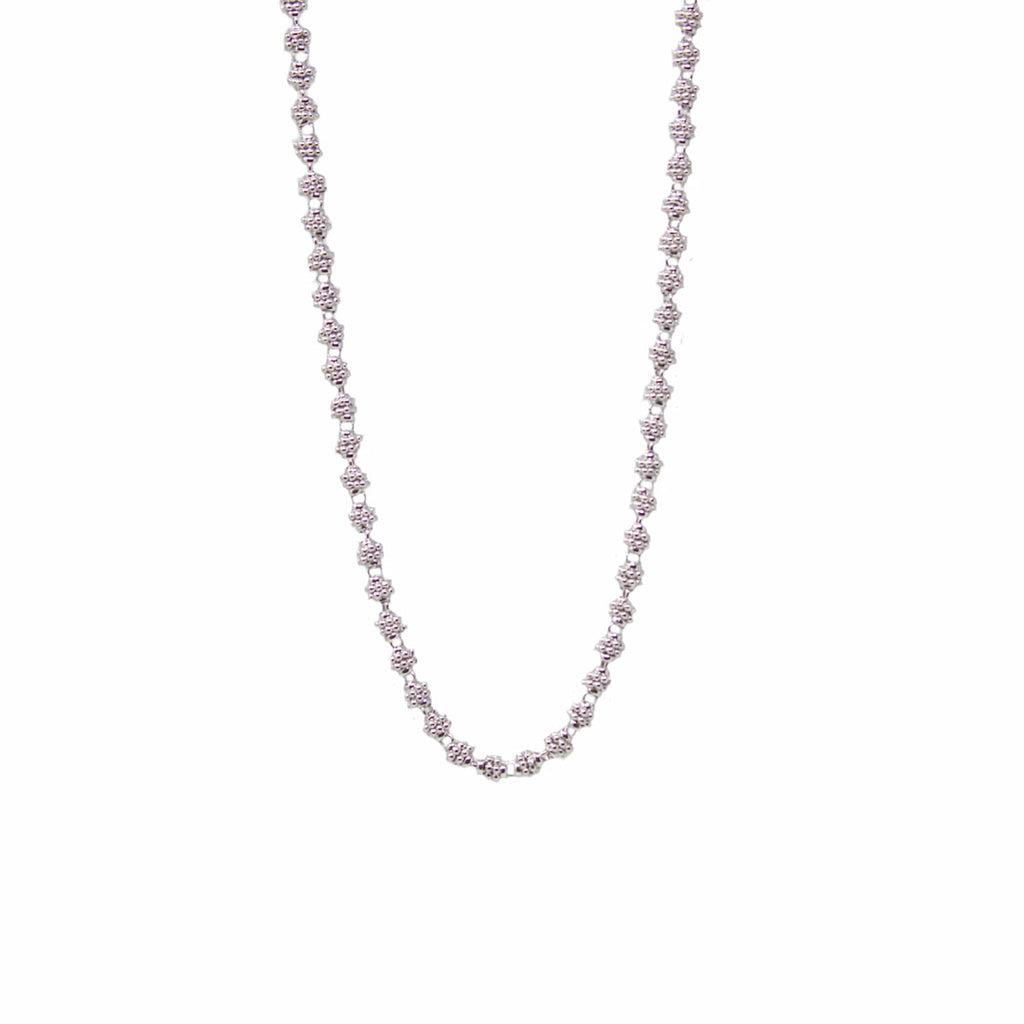 La collezione Mini Links Etruschi di DelBrenna introduce una variazione della nostra catena Links Etruschi, caratterizzata da un diametro di 5 mm e una lavorazione smerlata, ispirata agli antichi gioielli etruschi. Una collana decisa ed importante, che nasce per rendere omaggio alla nostra