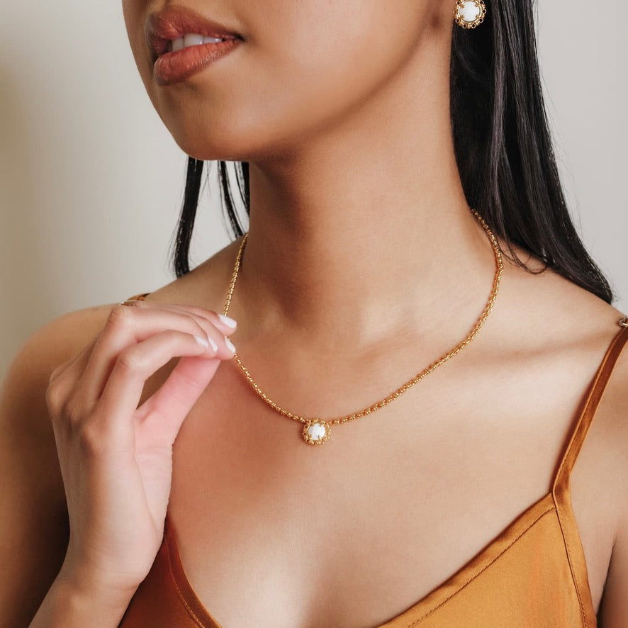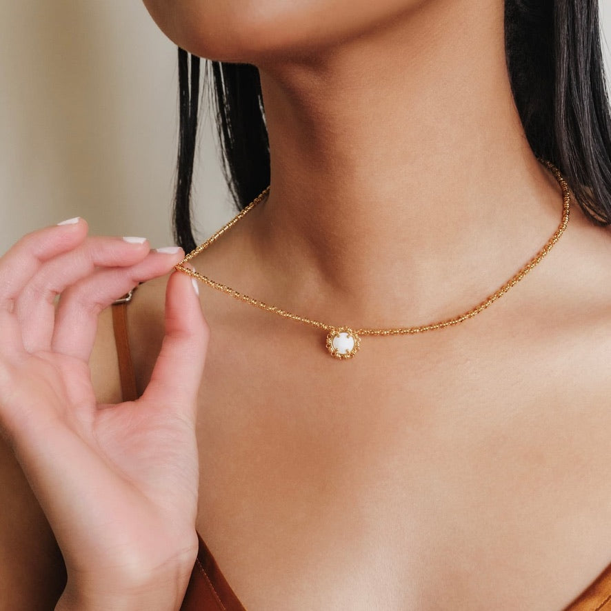 Gemma Necklace in Gold with White Agate