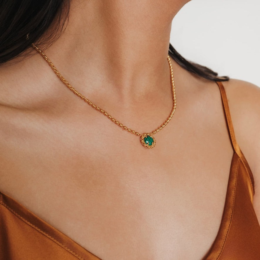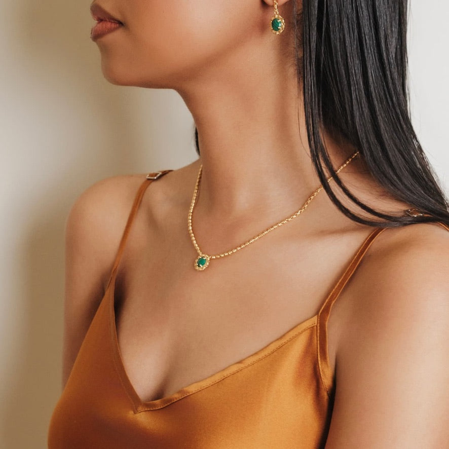 • Gemstone: 8mm Malachite (diameter 0.3"), briolette cut