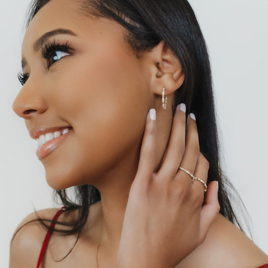 DelBrenna’s Whisper collection in 14k gold celebrates elegance in its most intimate form. Featuring delicate necklaces, luminous earrings, and diamond-kissed stackable rings, each piece is crafted to hold a quiet promise—like a wish shared in a whisper. Inspired by the belief that the most meaningful moments are spoken softly, the collection captures the beauty of intimacy, intention, and the small sparks of magic woven through everyday life.