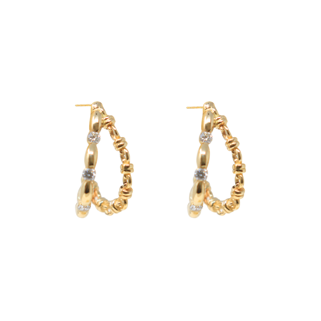 Double Whisper Earrings in 14k Yellow Gold with Diamond Stations